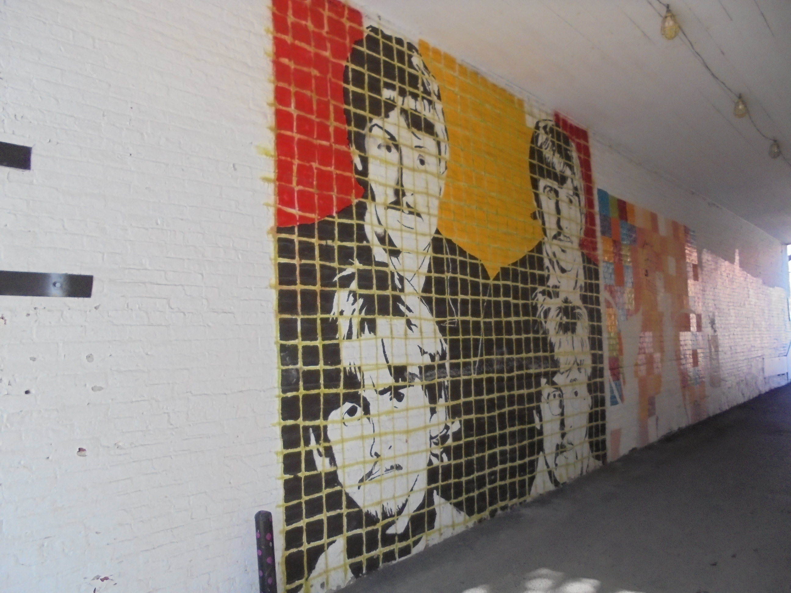 In this portrait, the four faces are rendered in stark black and white, but contrast sharply against the vivid red and golden yellow background. As the owner of Tarat Studio on Utica Street in Clinton, Rand was pleased to have the opportunity to share his own work with the public, helping to promote the arts in general. He has simultaneously brightened up the West Park Row alley, with an opportunity to stop by and visit John, Paul, George, and Ringo.