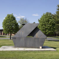 Description: Why document public art? Well, among other reasons, it doesn’t necessarily last forever, or stay in one place. Dennis Barraclough’s Untitled Sculpture serves as an example of that. When the ArtOneida project began, this work was photographed and researched for the project. However, by the time this book was going to press, it had been taken down, after almost 40 years. The artist recalled it was originally painted blue when installed in 1977. By 2016, the paint had worn away and some rust had appeared. Wear and tear are common for artworks placed out in the elements. Indeed, the artist had been surprised to hear his work was still installed on the campus. Artists aren't always able to keep track of their work after a sale. Work can be moved to a different site, sold to a different collector, even dismantled. As artists may change their own styles, so can public appreciation change over time, and preservation can be difficult. This sculpture was commissioned for the Mohawk Valley Community College campus in Utica. The artist had a solo exhibition there in 1975 and was asked to create a new work. He continued to create sculpture until the late 1970s, but now he is primarily known for his painting. In 1972 he began teaching at Daemen College, where he is now a professor. His work over the years has also included monotypes and collage. He has exhibited work throughout the United States, Canada, Europe and China.