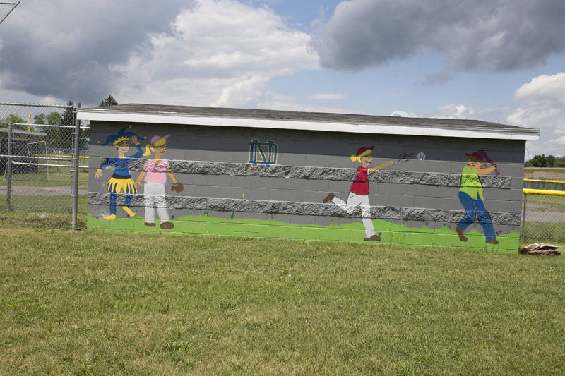 Description: 16 murals, 8 locations, and over 240 volunteers: that was the impressive count for Utica's Day of Action in 2015. Artist Caitlyn Knepka outlined all the figures in black in each location. Then volunteers were able to "paint-by-number" and fill in her designs. Local businesses sponsored each mural, providing the funding for paint and other supplies. Smiling children's faces and inspirational quotes fill the walls of little league baseball dugouts, park buildings, and the Community Health Center. The United Way of the Valley and the Greater Utica Area has hosted this event for several years. Other co-sponsors are The Parkway Center/Mohawk Regional Volunteer Center, The City of Utica, and the HomeOwnership Center. It's a tradition for United Way chapters across the country to sponsor a Day of Action. Often, this is scheduled around the Summer Solstice, to fit the most community service in the longest day of the year. 2013 was the Utica Day of Action's first focus on a "Graffiti Bust," in response to a community survey. Work in 2014 continued that theme, placing murals in areas commonly tagged with graffiti. By 2015, the community was ready for more, and the volunteers were eager to sign up.