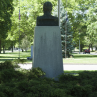 Inscription: "TO THE MEMORY OF / GEORGE E. DUNHAM / APRIL 5,1859-OCTOBER 29, 1922 / ADVOCATE OF GOOD CAUSES / ERECTED BY HIS FELLOW / CITIZENS AS A / TRIBUTE TO HIS USEFUL / LIFE IN UTICA / 1931"